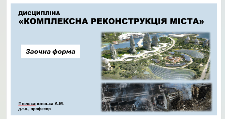 Мета навчальної дисципліни: отримання майбутніми фахівцями теоретичних знань з основних напрямків і методів удосконалення містобудівної діяльності в сучасних умовах, техніко-економічного обґрунтування проектних вирішень, управління розвитком та забудовою міст та набуття ними практичних навиків у застосуванні цих знань при вирішенні завдань з управління міськими програмами та оптимізації містобудівної діяльності.